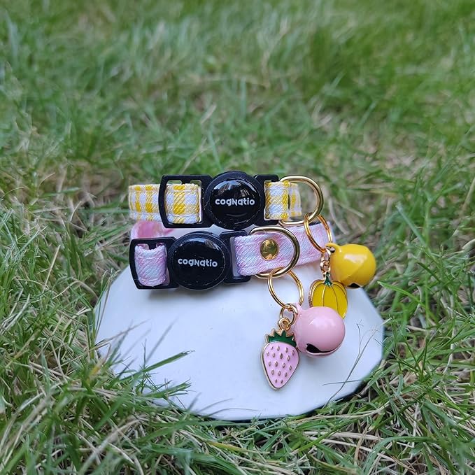 2 Pack Cotton Breakaway cat Collars with Bell,Safety Quick Release Pendant Cute Kitten Collar,Adjustable 20-30cm (Baby Pink+Lemon, 20-30cm)
