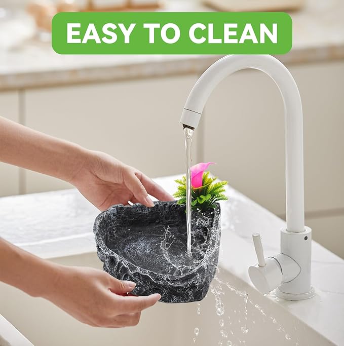 - Suitable for Various Theme Landscapes: The hermit crab water bowl imitates the shape and texture of rocks. Snake feed dish,whether it's a desert, rainforest, tropical theme, or other bearded dragon accessories, they can all blend well together, enhancing the overall visual experience of the aquarium