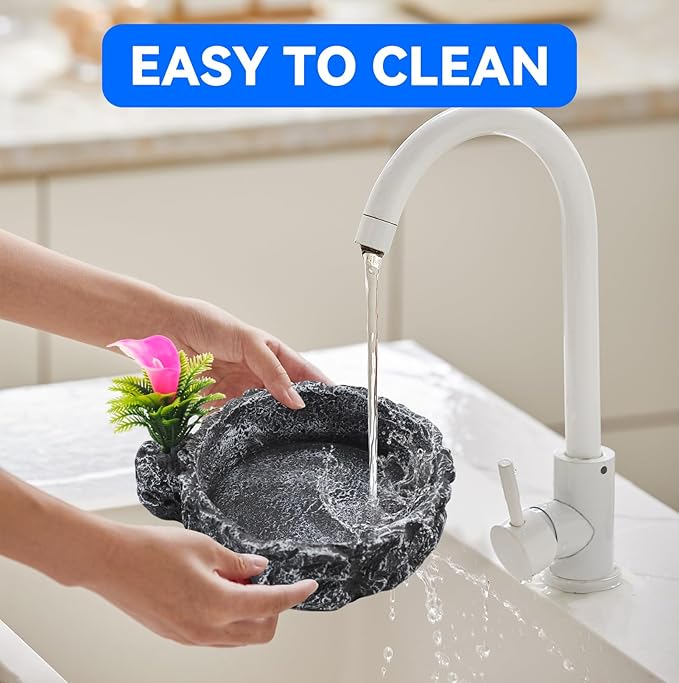 - Suitable For Various Theme Landscapes: The turtle water bowl imitates the shape and texture of rocks. Bearded dragon water bowl, whether it's a desert, rainforest, tropical theme, or other bearded dragon accessories, they can all blend well together, enhancing the overall visual experience of the aquarium. It's a perfect gift for reptile owners, keepers, and enthusiasts on every Christmas, Thanksgiving, Halloween, Valentine's Day, New Year's Day, Easter, birthday, and other festivals