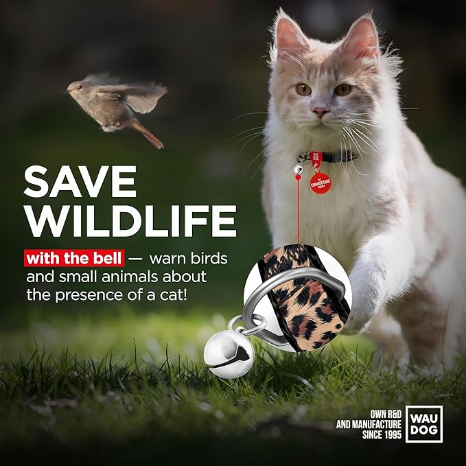 WAUDOG Nylon Cat Collar with Removable Bell and QR ID Tag for Small, Medium and Large Breeds Adjustable Long Lasting Durable Kitten Collars Boy & Girl