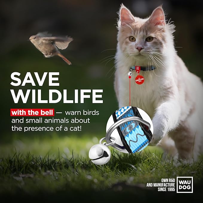 WAUDOG Nylon Cat Collar with Removable Bell and QR ID Tag for Small, Medium and Large Breeds Adjustable Long Lasting Durable Kitten Collars Boy & Girl