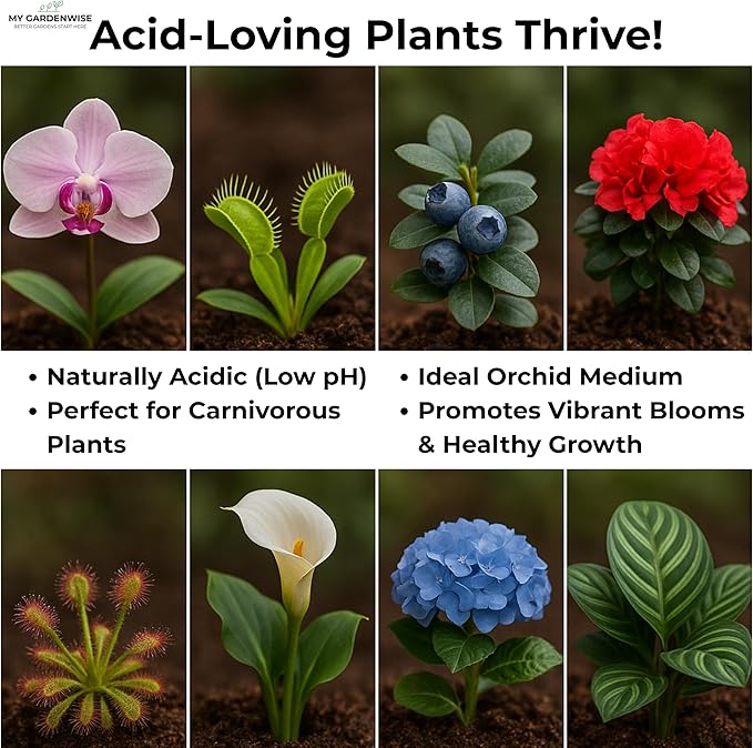 - 🌸 Loved by Orchids & Acid-Loving Plants Naturally acidic sphagnum moss creates ideal conditions for orchids, blueberries, azaleas, camellias, and hydrangeas. Great as orchid moss for repotting or blending into moss for plants that crave low pH.