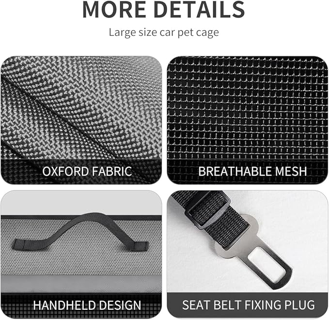- DOUBLE CAT TRAVEL CARRIER - We have designed a car safety buckle on the cat cage, providing a very safe way for your pet. When placed in the back seat of the car, it can be inserted into the car seat belt socket, making the cage more stable and fixed on the seat, increasing the pet's sense of security