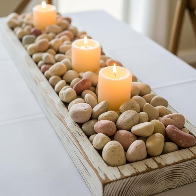 32 oz Jug Multicolor Cream Medium River Rock, 1½-3 inch size, for indoor outdoor decor, vase filler, candles, art, crafts, aquariums, fairy garden, planters, tablescapes, terrariums