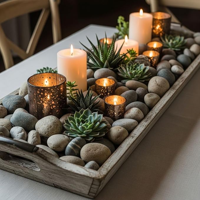 - Medium river rock is between 1.25” - 3” and is perfect for all types of home decor projects such as aquariums, terrariums, planters, candle base, decorations to exterior landscaping projects like paths, raised beds, mulch, patios, firepits, and driveways.