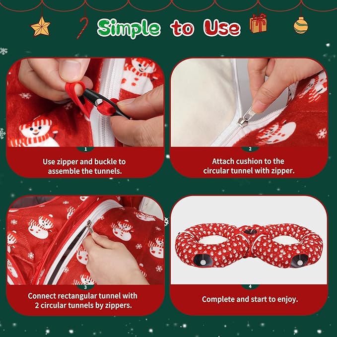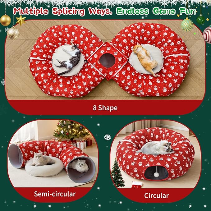 - Multiple Splicing Styles: 2 circular tunnels of this cat cave tunnel are connected to a rectangular tunnel, forming a special 8-shaped maze. The cats run back and forth in the maze as if they can't find the end. It can also be spliced together into circular, C shape, or used separately as a cushion. Multiple combination ways with this cat toys tunnel, endless fun for kittens.