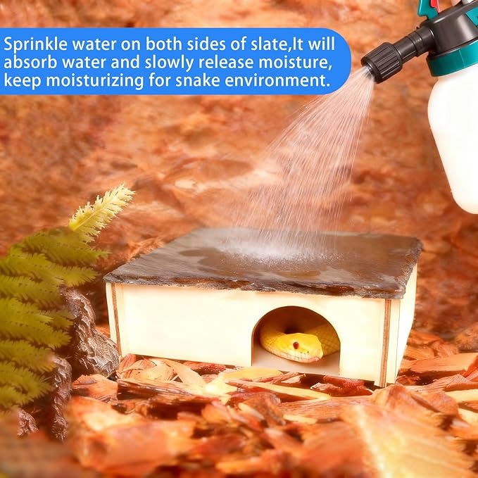 - 【Keep Moisturize】Our snake hide with slate.Sprinkle water on both sides of the slate. It will absorb water and slowly release moisture, keep moisturizing for snake environment.