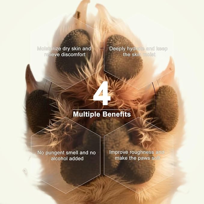 - Many Effective Ingredients: Our paw balm is made of many effective protective ingredients, offering multi-faceted protection to keep your pet's paws healthy and soft. Coconut oil provides deep hydration, improving rough skin conditions and relieving associated discomfort. Shea butter restores softness to rough pads. Vitamin E can moisturize dry skin.