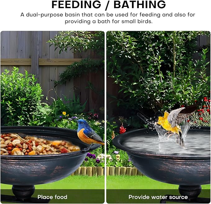 - This bird bath provides a perfect, safe environment for birds to bathe and drink. The carefully designed depth and width of the water basin attract a variety of birds, making it an ideal outdoor bird decor for your garden or balcony.