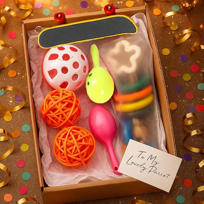 - 🎁 Bird Gift Set: Bird swing((7.88in" x 5.9in"), bird scooter, rattan ball, bell toy, and sand shaker! Perfect for expanding your bird playground