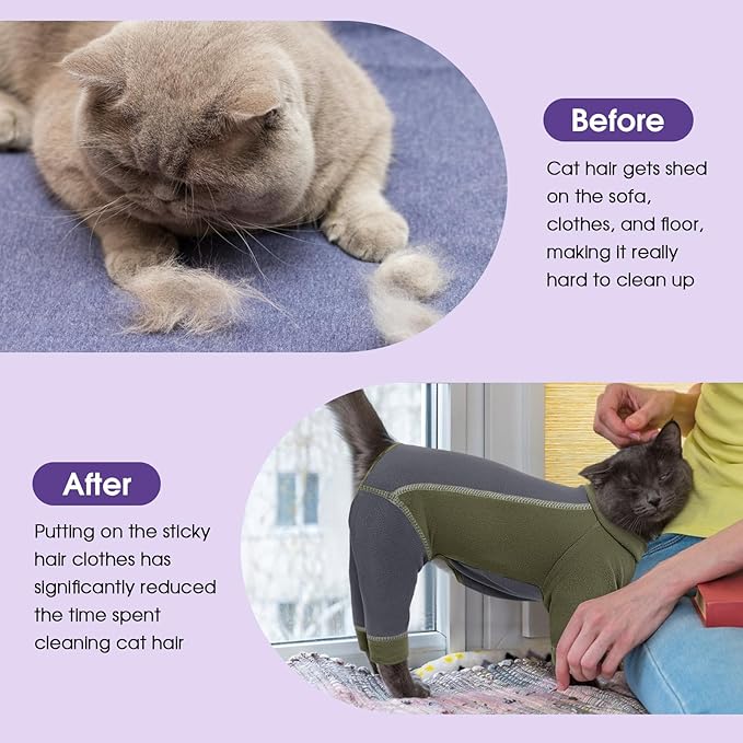 SUNFURA Hair Sticky Cat Clothes, Cat Sweater for Cats Only, 4-Legged Fleece Sweaters Kitten Pajamas Reduce Shedding Fur, Warm Pullover Shirts for Cats, Army Green M
