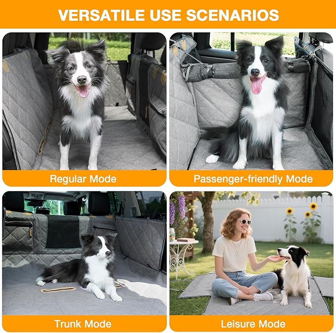 - Hard-Bottom, Stable & Nonslip: Rigid support panels + nonslip backing help reduce sliding and prevent paws from falling between seats during braking or sharp turns; doubles as a dog hammock for car to keep pets in the rear.