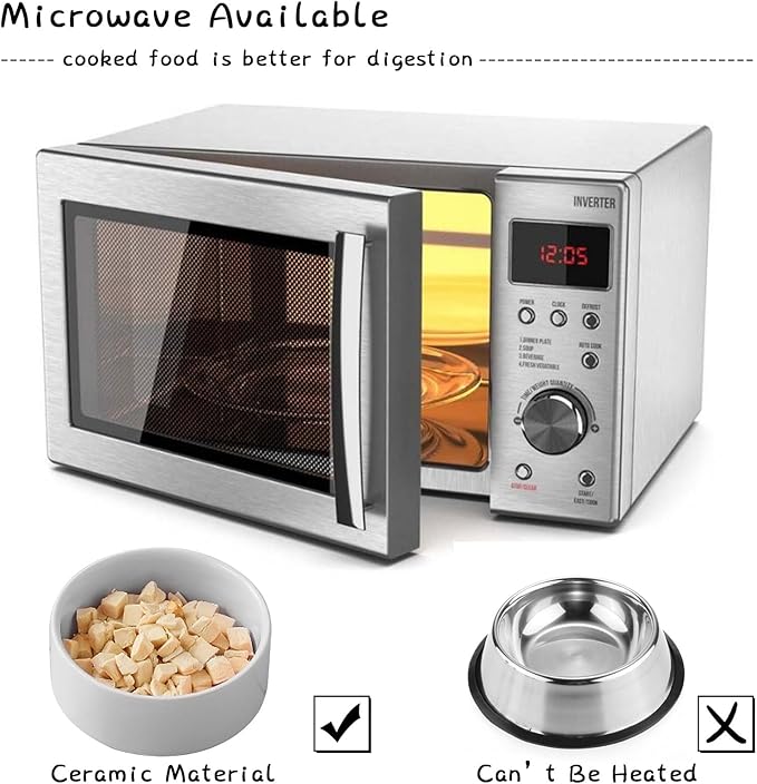 - Easy to Clean and Microwave Safe Ceramic Material - Cute ceramic dogs cats bowl with WOOD STAND design matches the home decorations. Ceramic bowl is made of Porcelain, this size cat dog food water bowls are free of lead and cadmium. High temperature ceramic, non-toxic harmless, no smell,durable.Clean sanitation, be helpful for pet health. conveniently dishwasher Microwave safe so this ceramic food bowl can be easily cleaned. No Fuss.