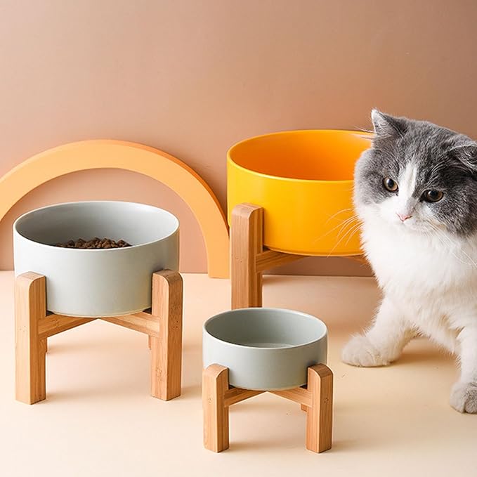 - NON SLIP WOOD STAND -You can get two different heights by flipping the bamboo stand,the elevated ceramic large size pet bowls are perfect for small and medium dogs from different stages of childhood to adulthood, The wood stand on the bowls stopping ceramic dog bowl from sliding around, Keeps pet food and water in the bowls.