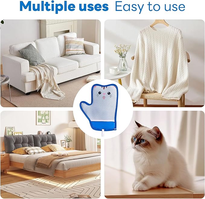 - 【All-in-One Cat & Dog Solution】 From stubborn cat hair remover to dog fur, this pet hair removal glove works everywhere: beds, car seats, quilts, and more. Reusable and eco-friendly for a sparkling home!