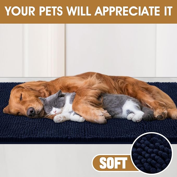 IM HOME 48" x 38" Navy Blue Dog Door Mats for Muddy Paws, Chenille Absorbent Dog Mat, Non Slip Heavy Mud Mat for Dogs, Soft Pet Bed Mat for Entryway, Mud Paws, Inside Floor