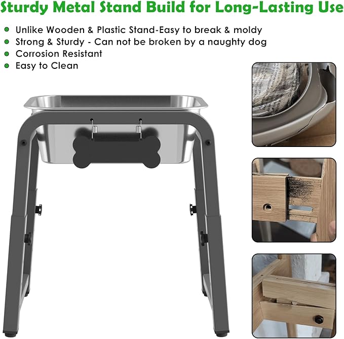 - 【DURABLE MATERIAL AND CLEANING CONVENIENCE】The water bowl is made of rust-resistant, dishwasher-safe stainless steel, which is healthier and more durable than plastic or ceramic. The stand is made of sturdy metal, which is durable in outdoor or humid environments