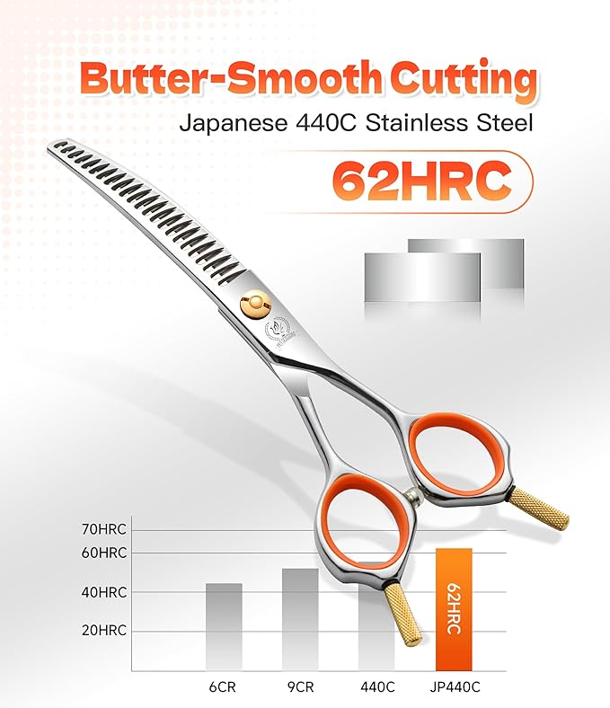 - sharp and Fine Cut - These dog & cat grooming scissors are sharpened by handicraftsmen. Experts check the scissors' sharpening one by one. Consequently, the blades of these pet grooming scissors are extremely sharp, and the cut is very fine, precise, and fast, It works very well on any type of coat, regardless of whether it is thick, wiry, or curly.