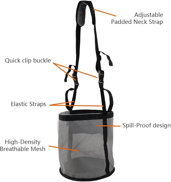 - The feedbags with an adjustable strap, a comfort neck pad, and a nose pad.There is also an extra adjustable strap so that it can be replaced when necessary.