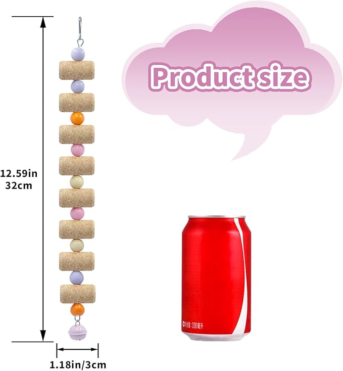 - 【Interactive Bead & Cork Design】 The alternating cork segments and colorful plastic beads create visual and tactile interest that encourages natural chewing behavior. Birds can manipulate the beads while enjoying the crumbly texture of cork, providing both mental and physical stimulation.