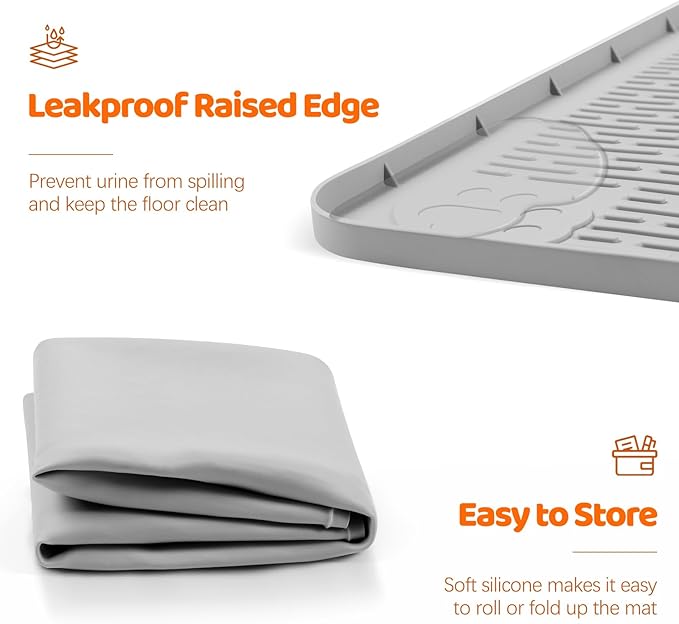 - Versatile Design: In addition to being a potty training pad, this silicone mat can also be used as a pet food mat for bowls, a reliable feeding pad to prevent spills, and even as a cat litter box mat. This silicone mat, smooth silicone surface effortlessly contains kibble crumbs, water drips, and scattered litter, keeping spaces neat. Crafted from soft, flexible silicone, this dog training pad folds easily for storage or travel.