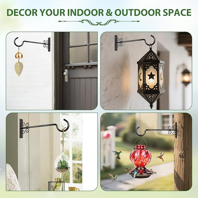 - Mutil Purpose: Plant hanging brackets are suitable for both indoor and outdoor use by hanging bird feeders, bird bath, planters, lanterns, holiday decorations, string lights, wind chimes, ornaments, candle holders, path lights, and more