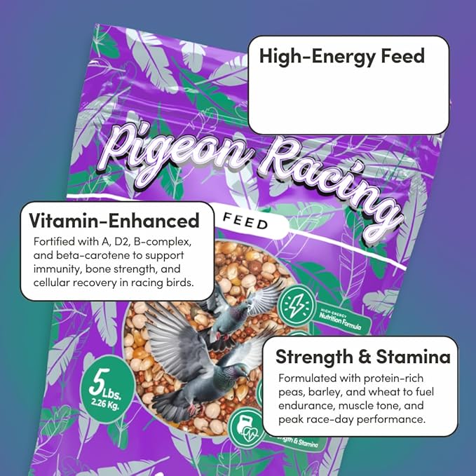 - Fortified with Pigeon Vitamin Premix: Enhanced with a premium vitamin and mineral blend to support immune strength, muscle recovery, and energy metabolism—ideal for racing pigeons during training, flights, and recovery.