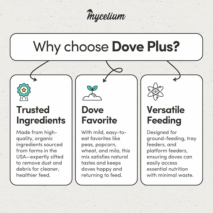 - Premium Clean Blend for Doves: Specially crafted for doves, pigeons, and ground-feeding birds, this high-quality mix includes milo, popcorn, peas, and wheat to deliver balanced daily nutrition.