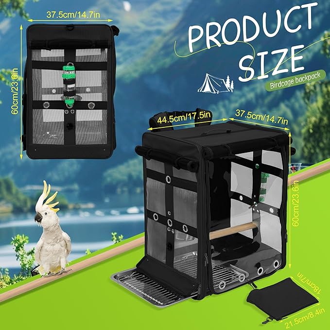 - Feeding & Perching - There are a removable bowl, a water bottle and a perch come with the bird carrier. It provides a comprehensive care and comfortable environment for birds even in a long travel.