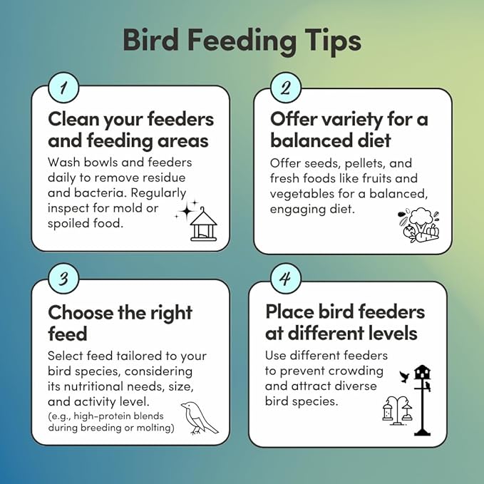 - High-Protein Blend with Essential Nutrients: Delivers 17.40% protein with added vitamins A, D3, E, B12, and more to support strength, feather vibrancy, and immune health.