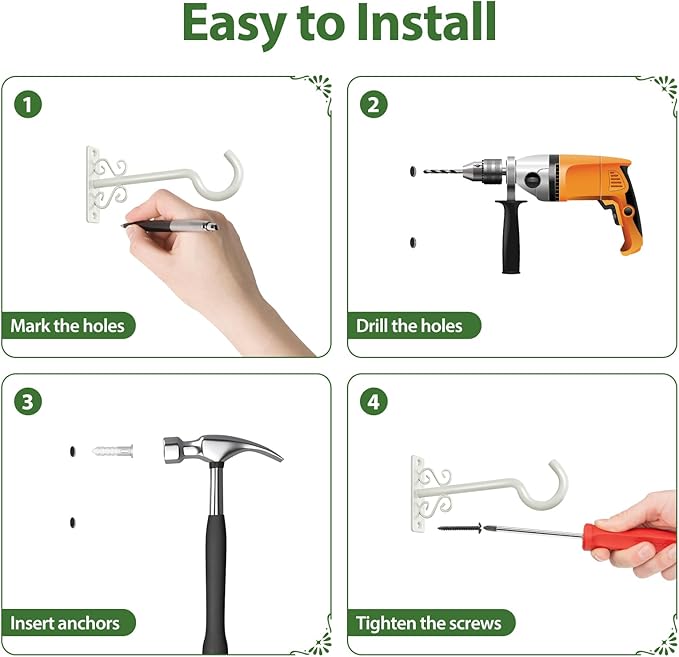 - Easy to Install: Screw the plant hook into wood wall, dry wall, brick/concrete wall, wood fence posts and deck posts. Looks great within a variety of environments, curved hook can hold items securely