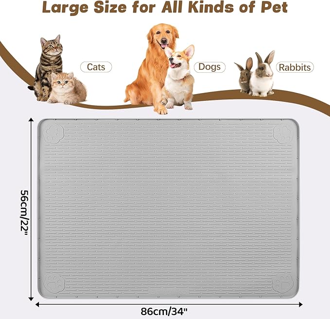 - Large Cat Food Mat: This large 34" x 22" / 86 x 56 cm cat food mat has enough space for multiple bowls, and perfect for dogs, cats and other pets to eat together, keep paws and floors clean