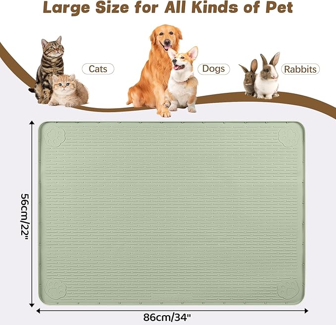 - Large Cat Food Mat: This large 34" x 22" / 86 x 56 cm cat food mat has enough space for multiple bowls, and perfect for dogs, cats and other pets to eat together, keep paws and floors clean
