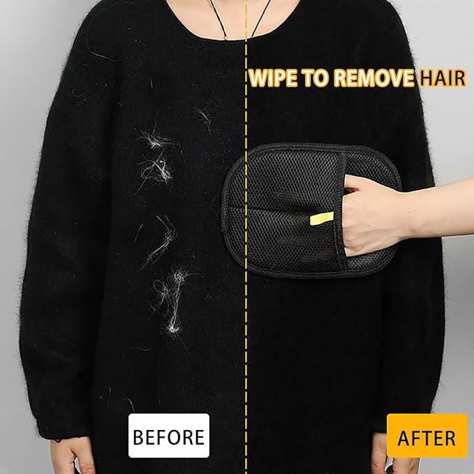 - 【Electrostatic Hair Removal Powerhouse】 Unlock effortless cleaning with our electrostatic pet hair remover gloves! Charged fibers magnetically lift embedded cat/dog hair from furniture, couches, carpets, and clothing in seconds. Simply glide and watch hair clump – no sticky rollers needed. Bonus: Two gloves per pack for whole-home coverage!