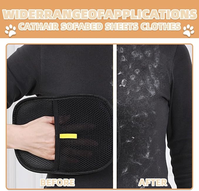 - Electrostatic Pet Hair Removal Gloves Brush for Pets Hair: Utilizes advanced electrostatic technology to attract and trap loose hair, dander, and debris from pets and surfaces.