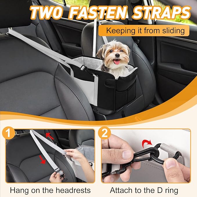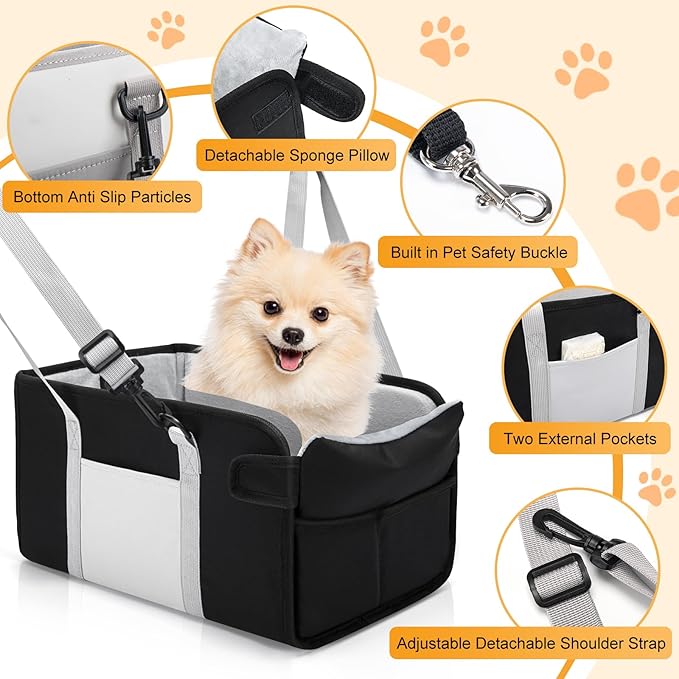 Portable Dog Car Seat for Small Dogs - Adjustable Safety Leash, Washable Cushion & Storage Pocket - Pet Booster Seat for Car Travel- Carbon Black
