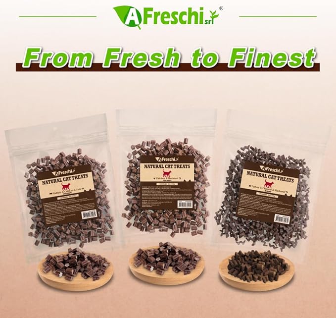 AFreschi Natural Cat Treats Turkey & Chicken & Mackerel W Shape 6 oz, All-Natural, High-Protein, Grain-Free, Healthy, Low-Fat, Easily Digestible