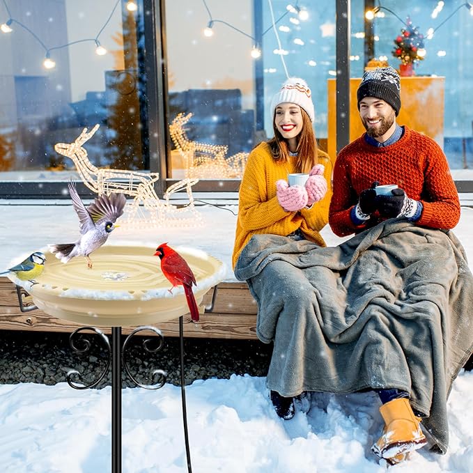 - 【Best Gifts for Feathered Friends】The heated bird bath can be used to provide gentle water for your birds during the cold season, let your bird friend have happy winter days; You will be very relaxing to watch varieties of birds coming to drink, bathe or a moment of rest in the water during a beautiful snow storm
