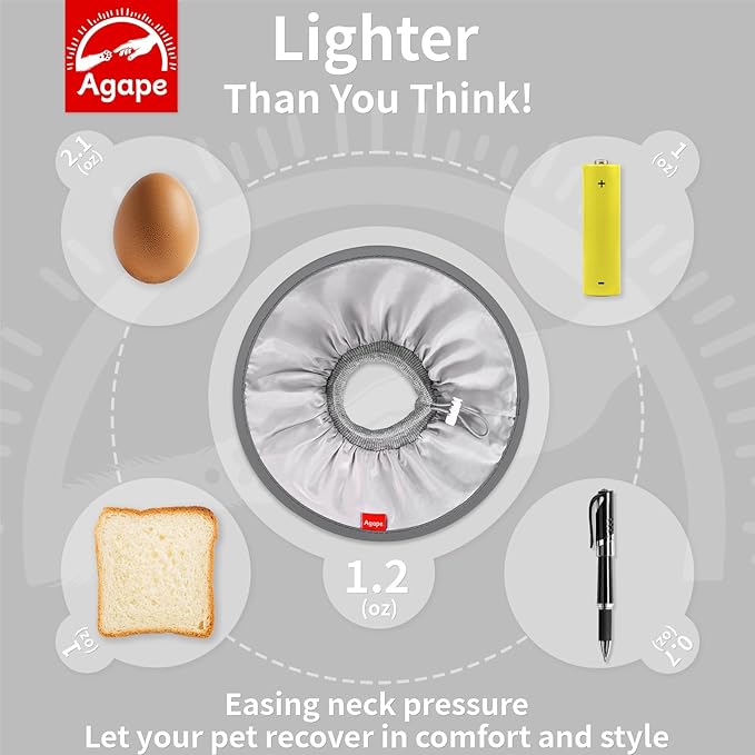 - 【Soft & Lightweight】Unlike bulky, uncomfortable cones on the market, Agape's cat cone is made with two layers of silky fabric and a ribbed knit collar, weighing just 1.2 ounces—about the same as two single AA battery. This ultra-light, breathable, and soft design ensures your cat can sleep peacefully and comfortably, without feeling any strain or restriction around their neck