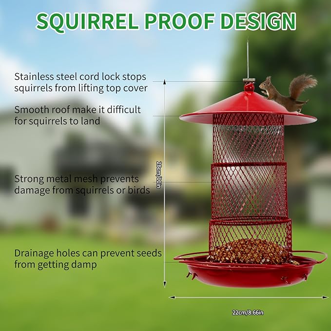 - 【Attracts Birds & Ready to Use】 The vibrant red color is scientifically proven to be highly visible and attractive to cardinals, finches, and other beautiful songbirds. Your metal bird feeder for cardinals arrives fully assembled – just hang it, fill it, and enjoy the show!