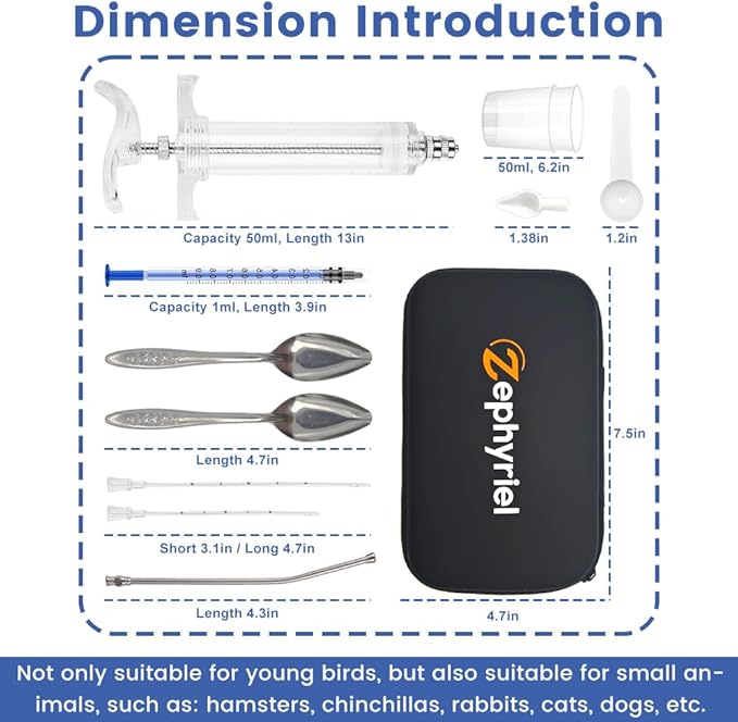 - Complete & Professional Set for Various Needs: This 12-piece set includes syringes, soft tubes and measuring cup and spoon, etc for birds (parrots, pigeons) and small animals (squirrels, rabbits) of different sizes and ages, perfect for all feeding scenarios.