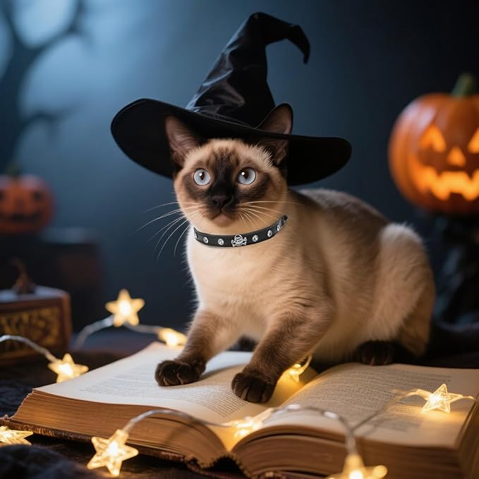 - Halloween Cat Collar:Our Halloween themed collar is designed with a white diamond skull pattern, perfect for adding a festive touch to your pet. It also includes bells and small charms to add charm to your pet.