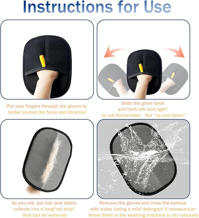 - 【Electrostatic Gloves Pet Hair Removal Set】Package includes-2 PCs pet electrostatic gloves pet hair removal+ 1PC cat comb.