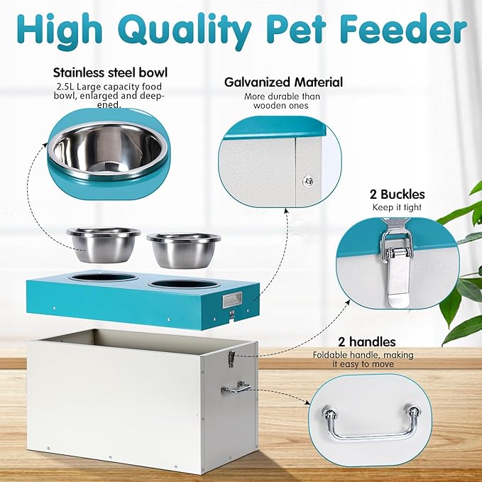 - 【Galvanized Steel Material】Elevated dog feeder is made of galvanized material,which is rust-proof,anti-biting and durable.It is easy to clean. Just wipe the surface or rinse it with water.It has a long service life and is more durable than wooden ones
