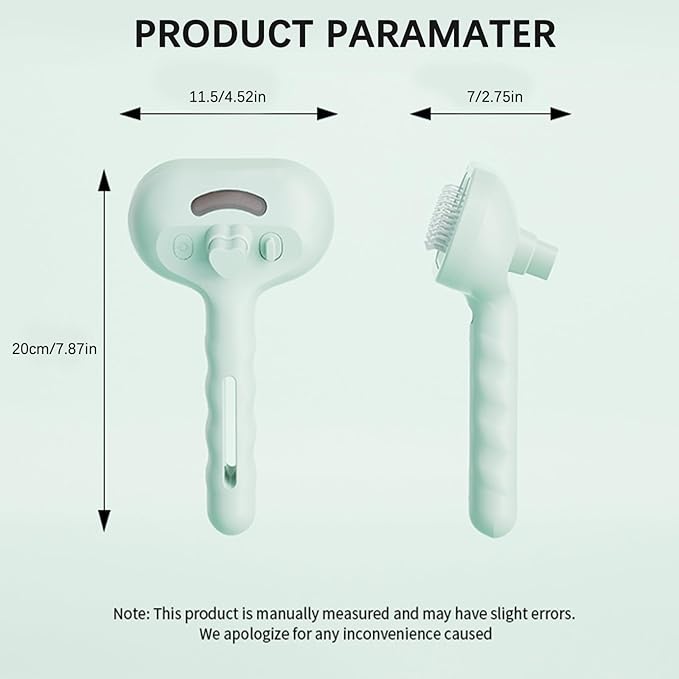 - Steam cat brush Function: Specially designed for pets, By adding water or an aromatic agent to the water tank, it releases a spray that lightly moisturizes your pet's coat, making hair softer and easier to collect. Say goodbye to static and flying fur, and hello to a sleek, smooth pet! For chilly pets, opt for lukewarm water for an extra-cozy touch.