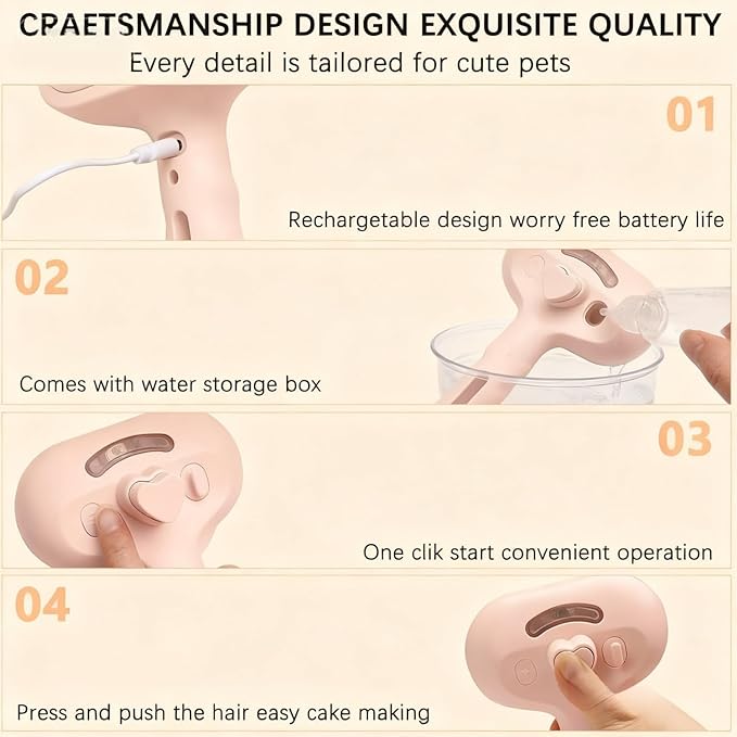 - Steam cat brush Function: Specially designed for pets, By adding water or an aromatic agent to the water tank, it releases a spray that lightly moisturizes your pet's coat, making hair softer and easier to collect. Say goodbye to static and flying fur, and hello to a sleek, smooth pet! For chilly pets, opt for lukewarm water for an extra-cozy touch.
