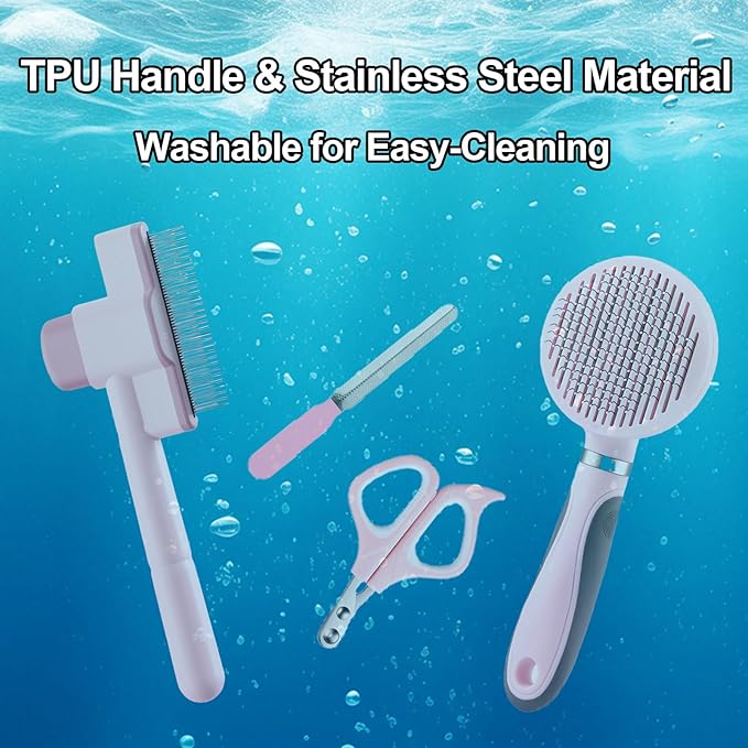 - ❤【Upgraded Professional Versatile Cat Grooming Kit】The HCHYEY comprehensive 4-in-1 cat grooming kit includes a cat hair brush, a cat flea comb, a cat nail clipper and a trimmer, which is the best combination to meet most daily grooming needs for dogs, cats and ant other small animals likes rabbits. This cat shedding set is perfect for desheding, dematting, grooming and massage, ensuring your furry friend’s coat shiny and healthy after every grooming session. A must-have tool for pet lovers!