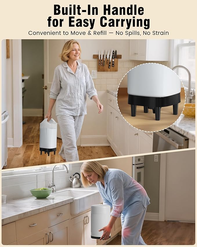 - 【Ergonomic Handle for Easy Carrying】Equipped with a strong built-in handle, the dispenser is simple to lift, refill, and reposition even when full. The practical design minimizes the risk of spills and strain, making it convenient for families, seniors, and households managing large-capacity pet supplies