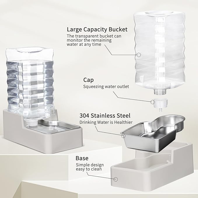 - Smart Gravity Feed & Effortless Refilling: Engineered with an efficient gravity-fed system, this dispenser automatically maintains the ideal water level in the stainless steel bowl as your pet drinks. Spills are minimized, and your pet enjoys a comfortable, natural drinking position. Perfect for pet parents with busy schedules—it’s like having a caring assistant for your furry family members!