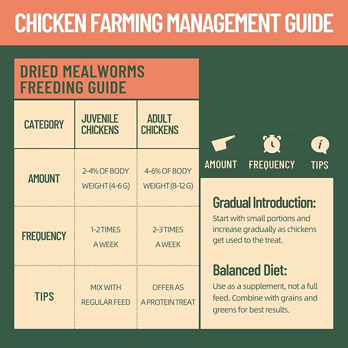 - 【100% Natural & No Additives】No preservatives, no fillers-just clean, naturally dried mealworms. Grown with care to ensure optimal safety and nutrition for your flock.